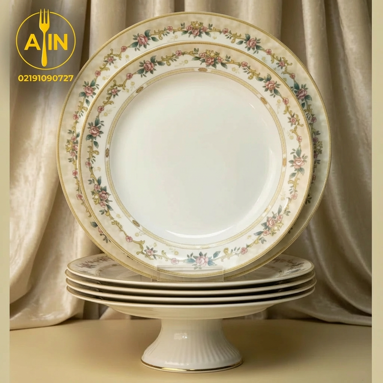 با لبههای طلایی، جلوهای مجلل و لوکس به ظروف میدهد و برای پذیرایی رسمی بسیار مناسب است.