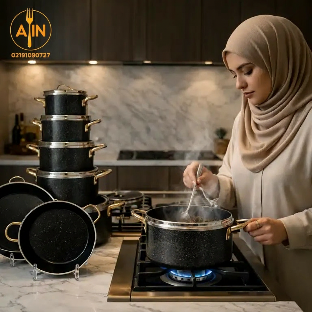 هر سرویس شامل قابلمه، تابه، و دربهای مقاوم در سایزهای متنوع است تا پاسخگوی همهی سلیقهها و نیازها باشد.