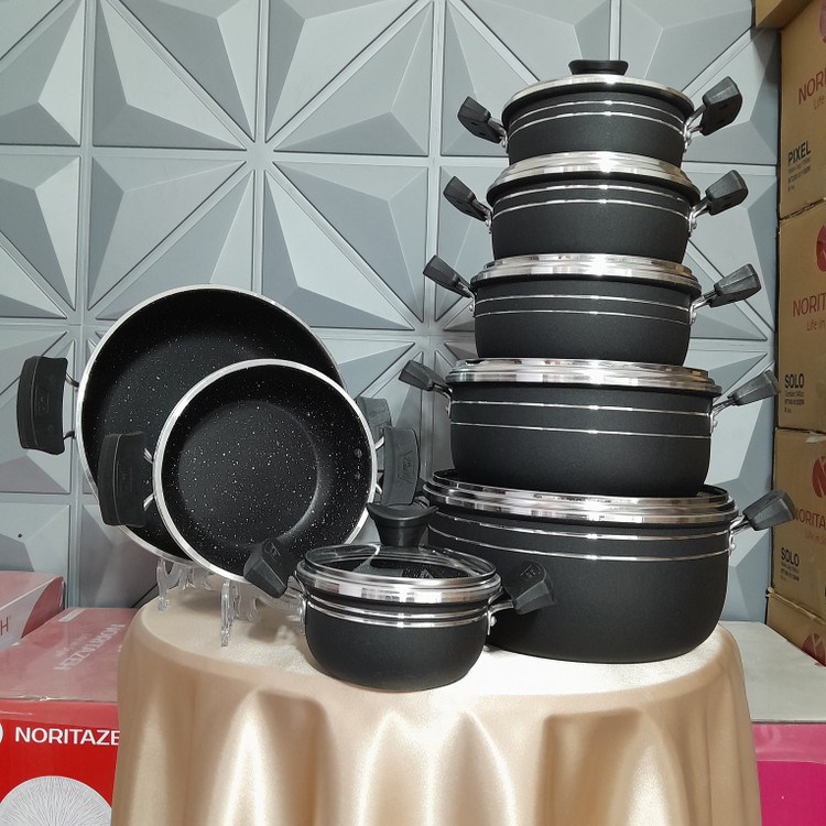 سرویس قابلمه پروفا با در نظر گرفتن اصول زیباییشناسی نوین و رعایت استانداردهای تولید داخلی، ابزاری ایدهآل برای خلق تجربهای ممتاز در آشپزخانه شما محسوب میگردد. طراحی منحصربهفرد لبه چدنی با تاکید بر خطوط برجسته، ظاهری مجلل و متمایز به این سرویس میبخشد و دستههای آبکاری طلا، مقاومت و زیبایی را به طور همزمان ارائه میدهند.