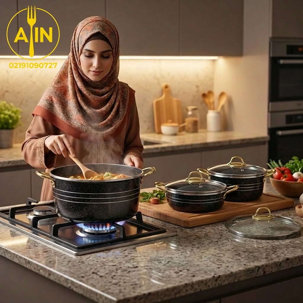 هر سرویس شامل قابلمه، تابه، و دربهای مقاوم در سایزهای متنوع است تا پاسخگوی همهی سلیقهها و نیازها باشد.