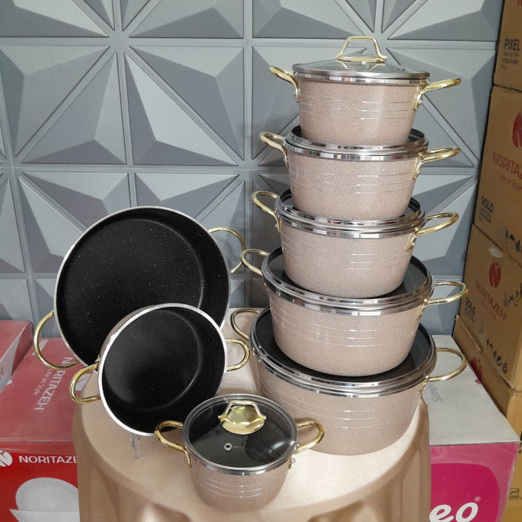 سرویس قابلمه کوشا، با تلفیقی از زیباییشناسی مدرن و استانداردهای بالای تولید ایرانی، تجربهای بینظیر در آشپزی را برای شما رقم میزند. طراحی خاص لبه چدن با خطوط برجسته، ظاهری لوکس و متمایز به این سرویس بخشیده و دستههای آبکاری طلایی ضد زنگ، جلوهای بینظیر به آشپزخانهی شما میافزاید.