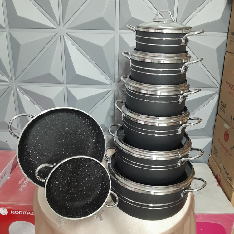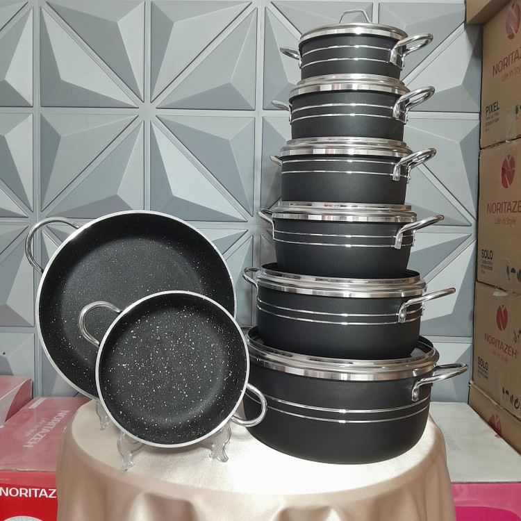 سرویس قابلمه اپیروس، با تلفیقی از زیباییشناسی مدرن و استانداردهای بالای تولید ایرانی، تجربهای بینظیر در آشپزی را برای شما فراهم میآورد. طراحی خاص لبه چدن با خطوط برجسته، به این سرویس ظاهری لوکس و متمایز بخشیده و دستههای آبکاری طلایی ضد زنگ، جلوهای بینظیر به آشپزخانهی شما میبخشد. بدنهی قابلمهها از آلیاژی مقاوم ساخته شده و با روکش گرانیت با دوام و ضد خش پوشانده شده است؛ این روکش، علاوه بر جلوگیری از چسبندگی مواد غذایی، حرارت را به طور یکنواخت در طول پخت و پز پخش میکند و در نتیجه، پخت بهتر و کاملتری را برای غذای شما به ارمغان میآورد. این سرویس در طیف رنگی متنوعی از جمله مشکی طوسی و سربی در دسترس است و با بستهبندی اورجینال شرکتی به شما تحویل داده میشود