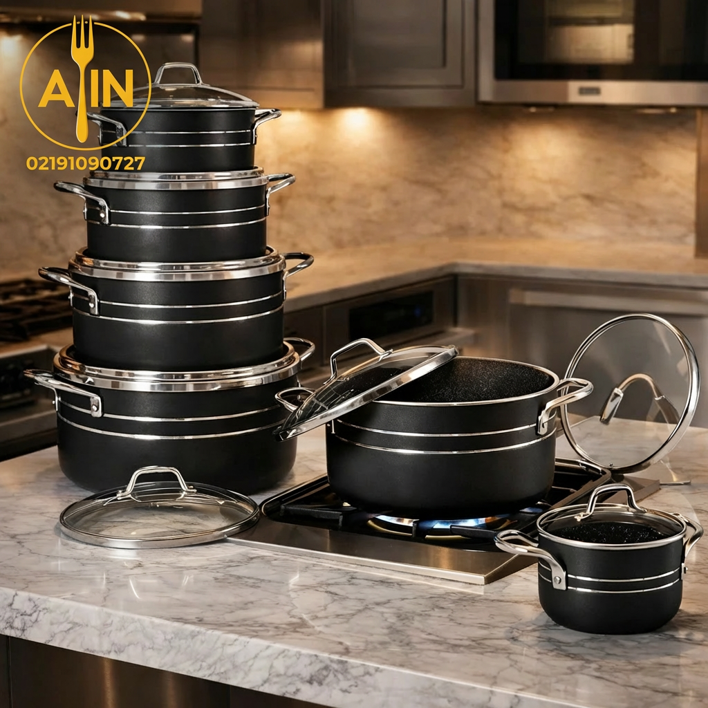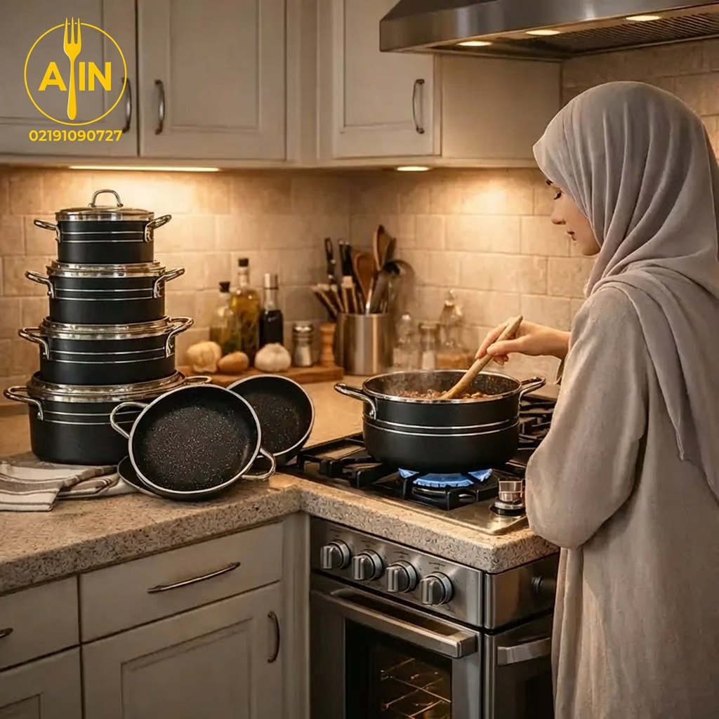 هر سرویس شامل قابلمه، تابه، و دربهای مقاوم در سایزهای متنوع است تا پاسخگوی همهی سلیقهها و نیازها باشد.