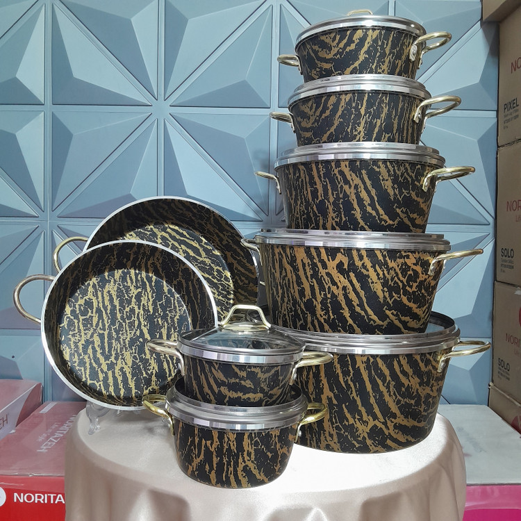 سرویس قابلمه اپیروس، با تلفیقی از زیباییشناسی مدرن و استانداردهای بالای تولید ایرانی، تجربهای بینظیر در آشپزی را برای شما فراهم میآورد. طراحی خاص لبه چدن با خطوط برجسته، به این سرویس ظاهری لوکس و متمایز بخشیده و دستههای آبکاری طلایی ضد زنگ، جلوهای بینظیر به آشپزخانهی شما میبخشد.