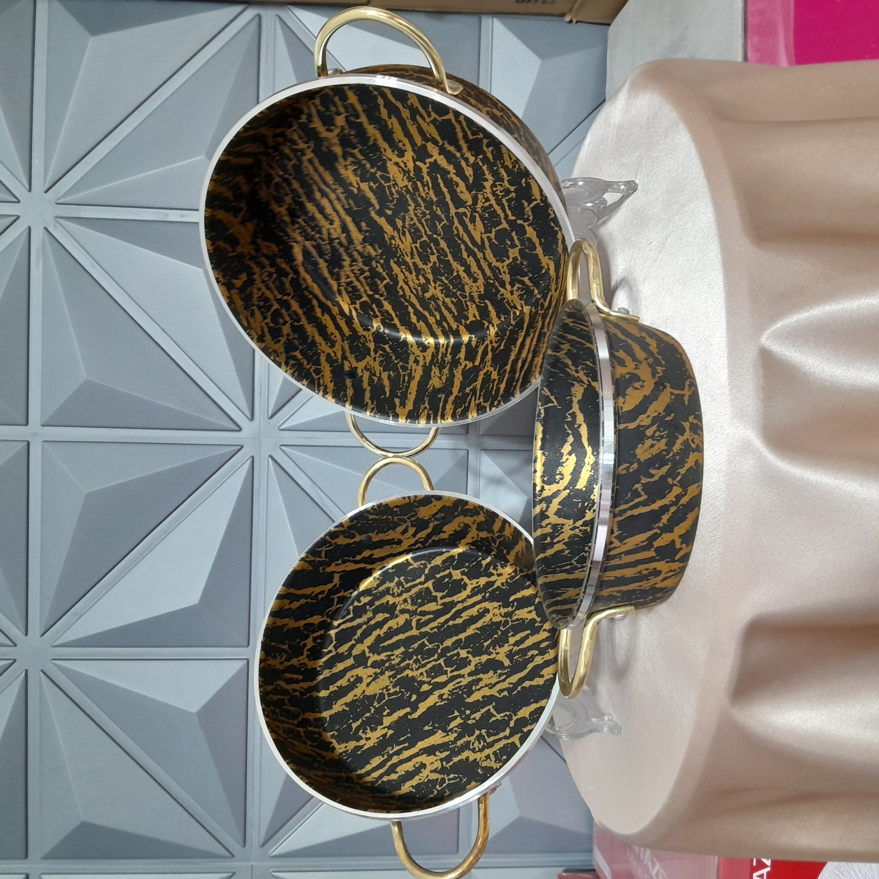سرویس۳تابه ماربل مشکی طلایی