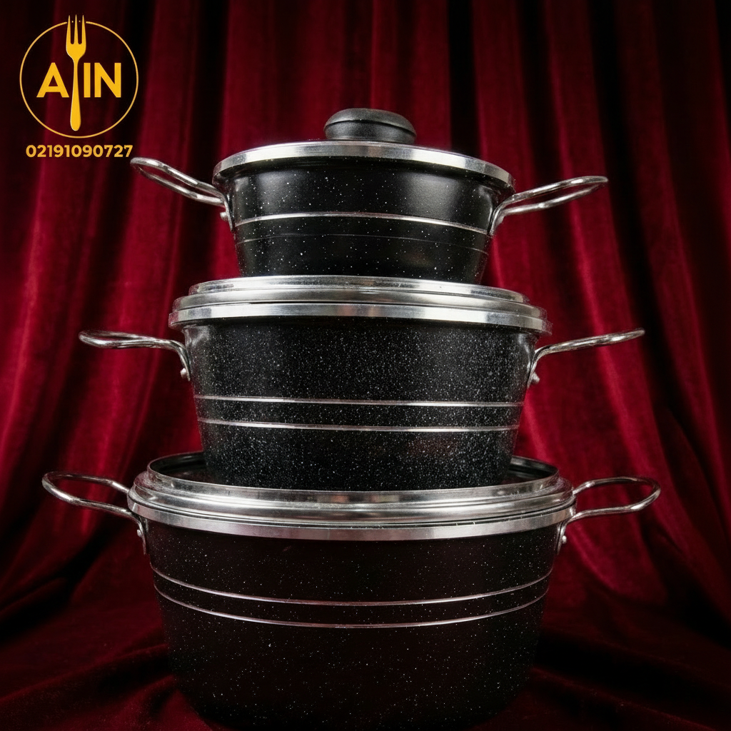 🍳 سرویس سه قابلمه آکو طرح مشکی براق