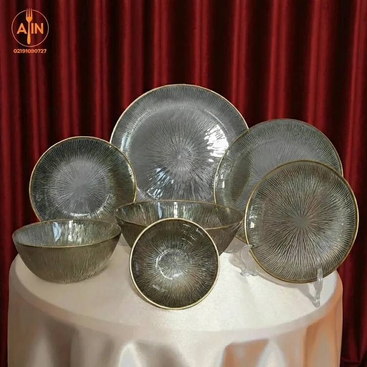 ✨ سرویس بلور 33 پارچه نوری تازه مدل شامپاینی لب طلا