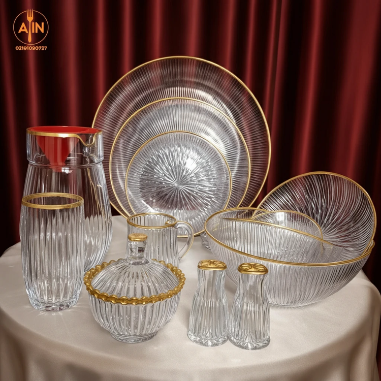 ✨ سرویس بلور 50 پارچه نوری تازه مدل سولو لب طلا