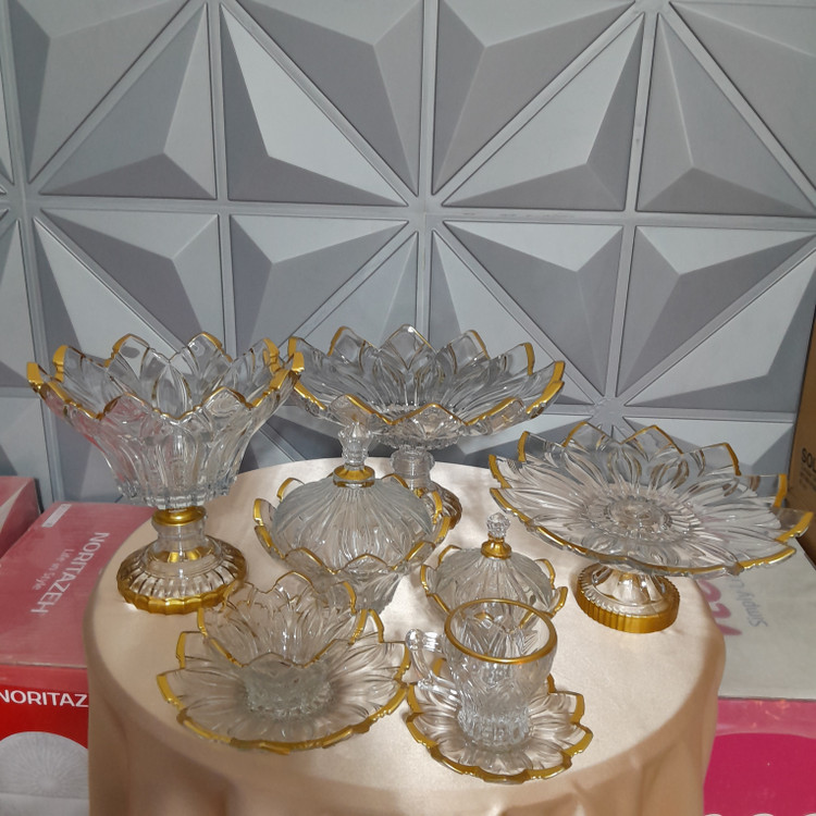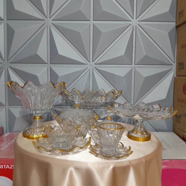 سرویس۳۱پارچه پذیرایی ورسای در دو مدل لب طلا و لب ساده بلور کارشده با طرح و نقش بسیار دلنواز و ظریف مخصوص سلایق ایرانی ترکیبی از مدرنیته و اصالت جنس شیشه بلور بدون سرب بسیار شفاف بوده و در برابر ضربه بسیار مقاوم است رنگ طلای لبه های سرویس در دمای ۲۵۰ درجه سانتی گراد طلاکاری شده و ماندگاری آن سال ها نمای پذیرایی مهمانی شمارا چشم نواز میکند